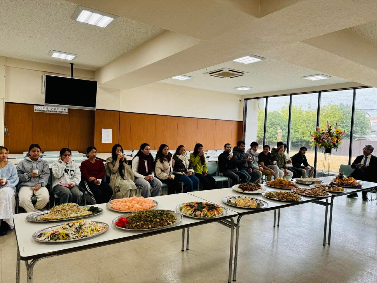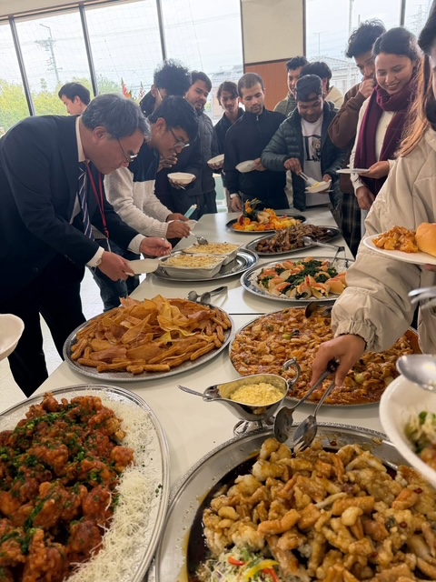 和やかな雰囲気の中、修了生は、在校生や先生方と別れを惜しみながら、おいしい料理をいただき、名古屋芸術大学留学生別科での2年間に名残惜しくも修了していく気持ちを思い出として心にしまっていく様子が見られました。